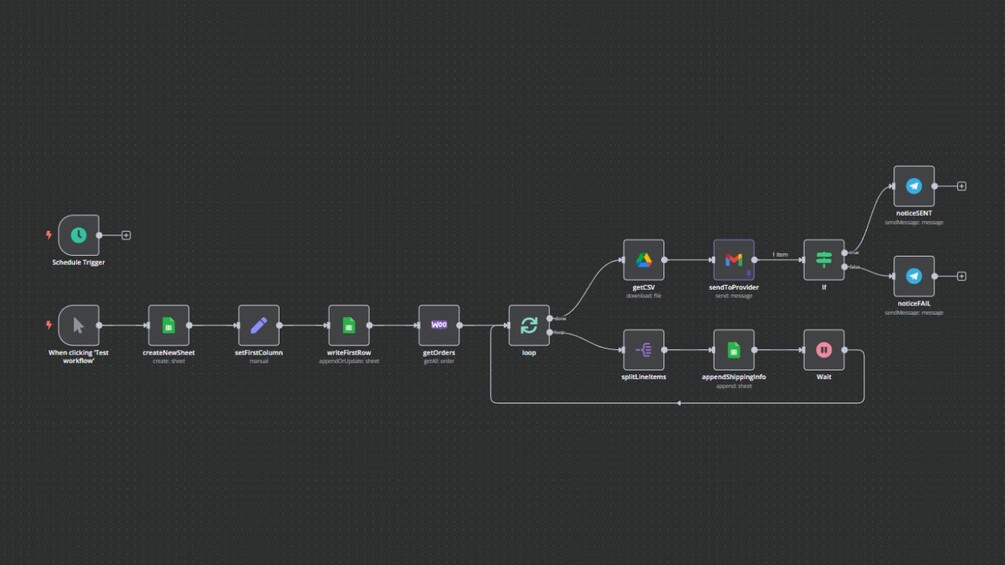 歡迎來到我們的「電商訂單自動化處理 n8n 模板」專頁!這個模板能幫助你自動整合訂單資料、生成 CSV 報表並同步通知物流公司與 Telegram,完美解決電商日常出庫流程的繁瑣操作,特別適合中小型電商經營者及自動化流程初學者參考。